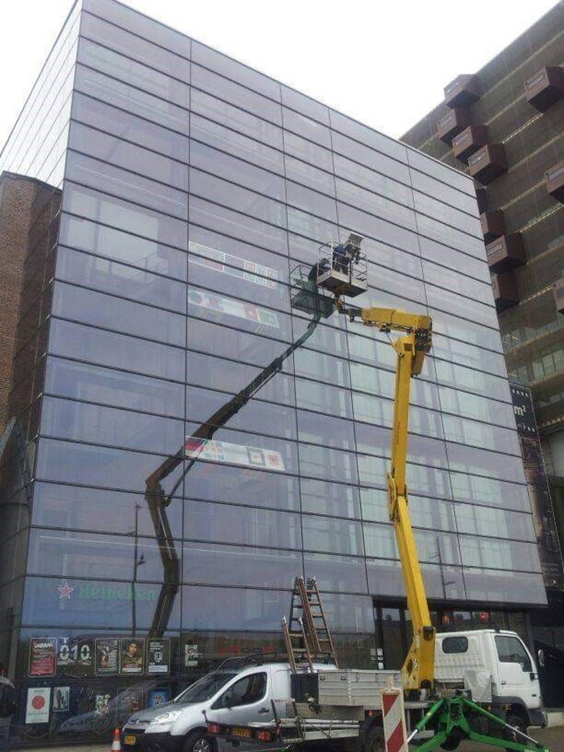 Zelfs de ramen van de bovenste etage zijn streeploos schoon onder de loep. Glazenwassers- en schoonmaakbedrijf The Clean Window uit Ridderkerk springt al 20 jaar hoog en laag voor glasbewassing en reiniging van kantoren, bedrijfspanden en Verenigingen van Eigenaren in heel Nederland.